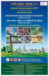Birla Industrial & Technological Museum, Kolkata will organize the National Science Seminar for the students on the 9th November, 2017. This year, the topic of the seminar is SWACHH BHARAT : ROLE OF SCIENCE & TECHNOLOGY PROMISES AND CHALLENGES. The objective of the Science Seminar is to inculcate a spirit of scientific enquiry and analytical thinking in the minds of young students. The Science Seminar will be conducted on a competitive basis in each State and Union Territory. The Seminar is organized generally at School, Block, District and State level before culminating at the National Level. Winners from each School participate at Block Level seminars and winners of Block Level seminars participate at the District level seminars. A maximum of 2(Two) winners from each District participate in State/UT level Seminar and only one winner from each State I Union Territory is eligible for National Science Seminar, which will be held at BITM, Kolkata on the 9th November, 2017.